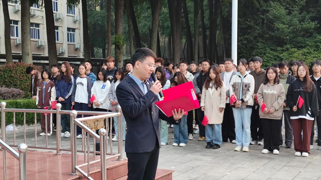 6时30分,国旗护卫队迈着整齐划一、铿锵有力的步伐,护送着五星红旗走向升旗台。伴随着雄壮豪迈的国歌,鲜艳的五星红旗冉冉升起,全体师生肃然静立,自觉向国旗行注目礼,齐声高唱国歌。2024级新生代表马如一、凯丽·比努尔、李善灏和李冠斌声情并茂地带来诗歌朗诵《新时代 新青年》。党员代表、2022级土木工程1班龙光原作了题为“做新时代有为青年”的演讲,表示作为新时代青年,要在专业学习上攻坚克难,在社会实践中勇攀高峰,把青春的奋斗足迹印在祖国大地上。