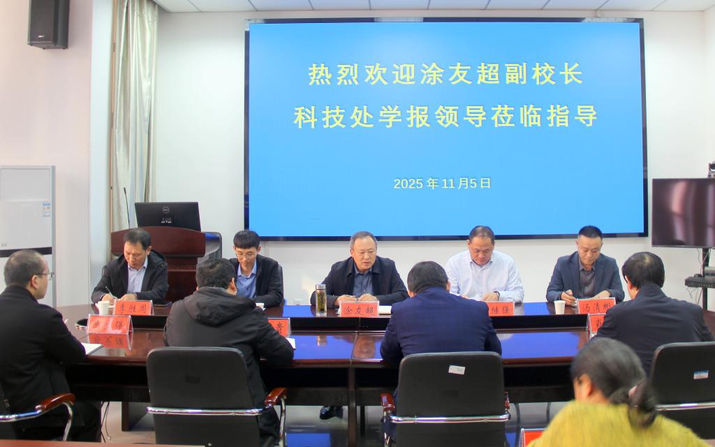 11月5日,副校长涂友超带领科技处处长牛继强、学报编辑部主任邱海洋、科技处副处长汤清彬、平台与成果科科长李胜周莅临8858cc永利官网调研指导科研工作;学院党委书记王永贵、院长周葆春、副院长肖琪聃、科研秘书马文强、邱文华博士参加调研。