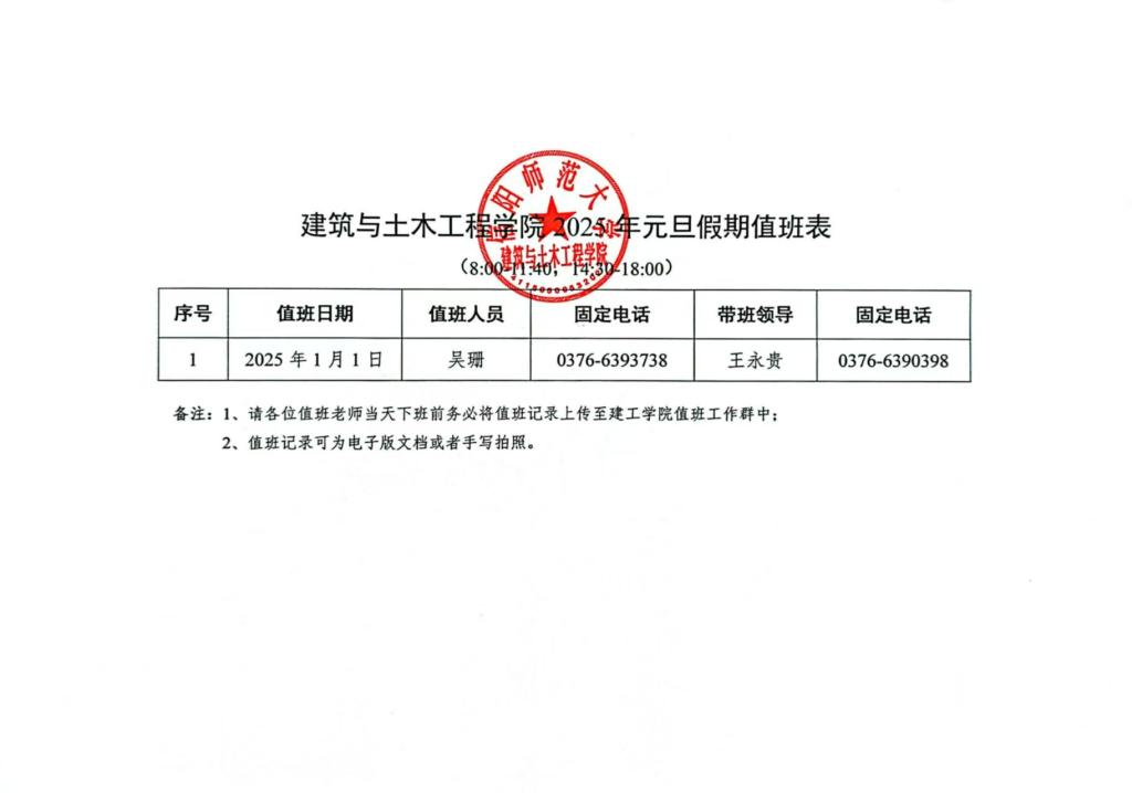 8858cc永利官网2025年元旦假期值班表